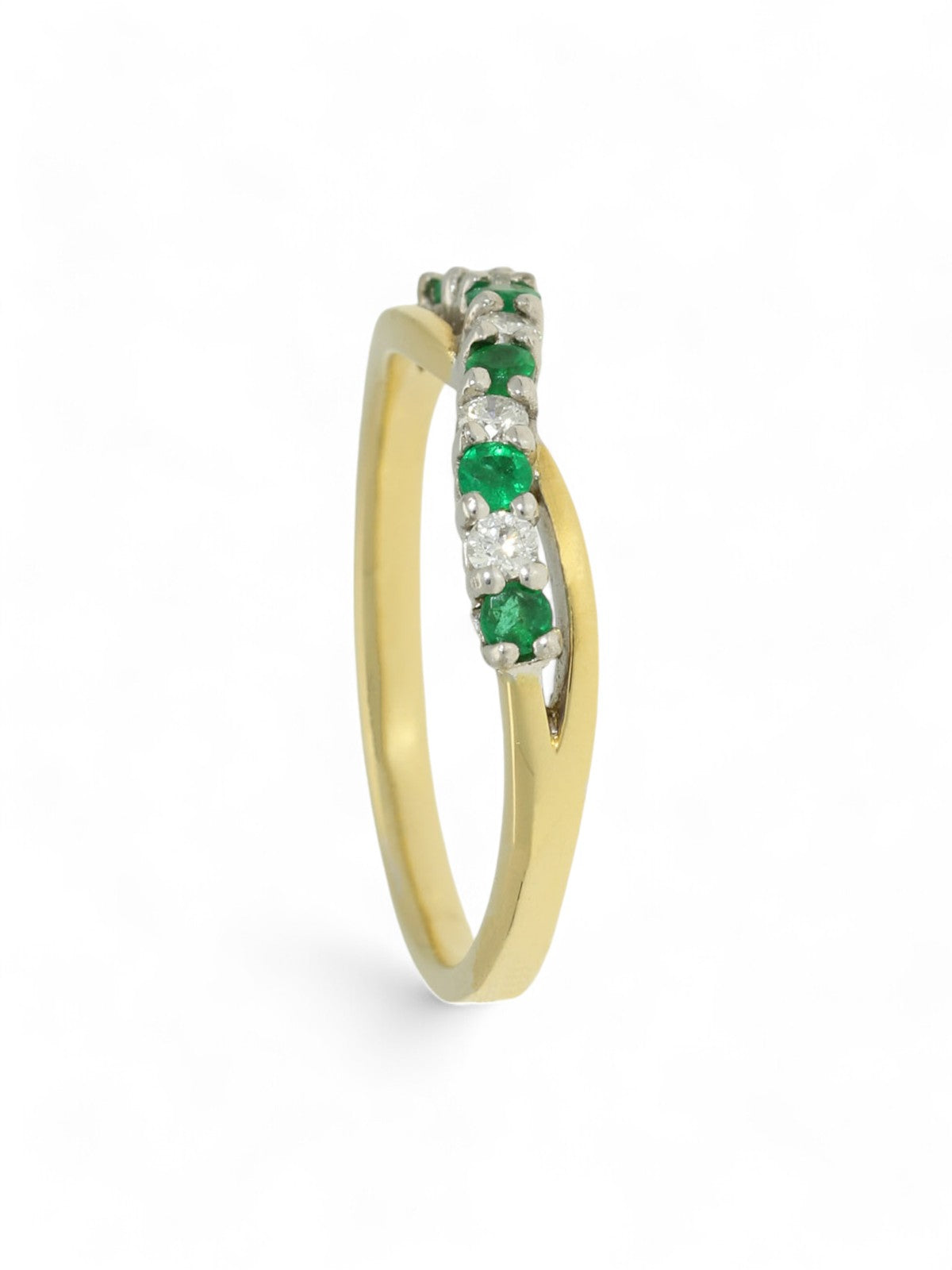Emerald & Diamond Half Eternity Ring in 18ct Yellow & White Gold