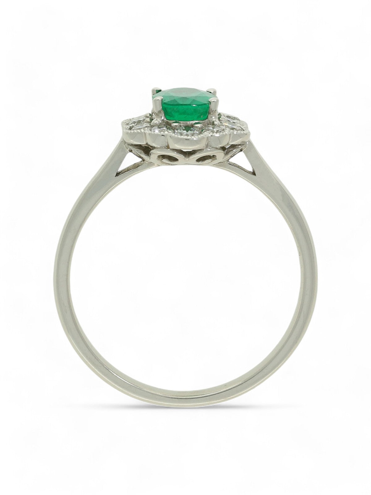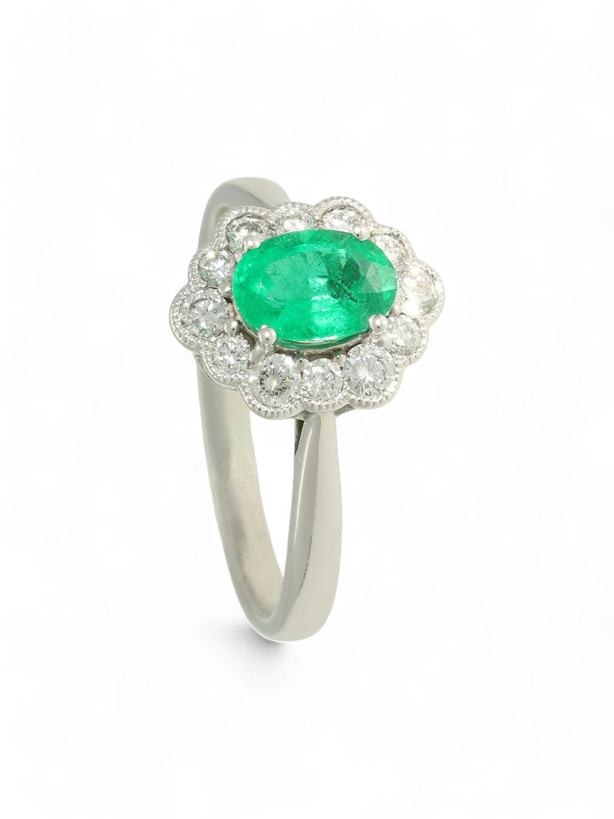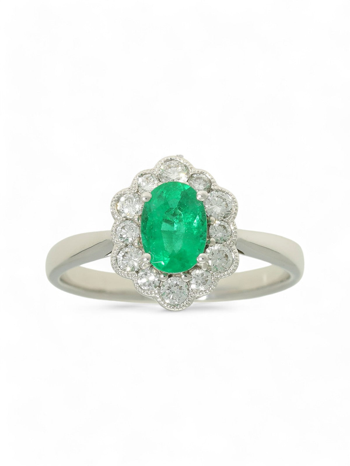 Emerald & Diamond Cluster Ring Oval Cut in 18ct White Gold