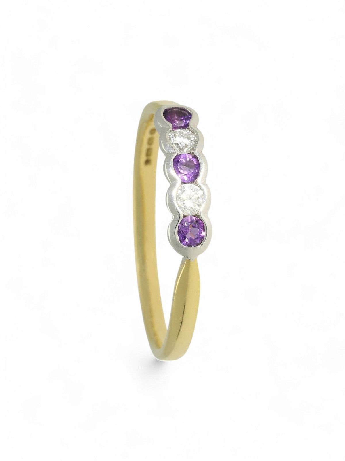 Amethyst & Diamond Five Stone Ring in 18ct Yellow & White Gold