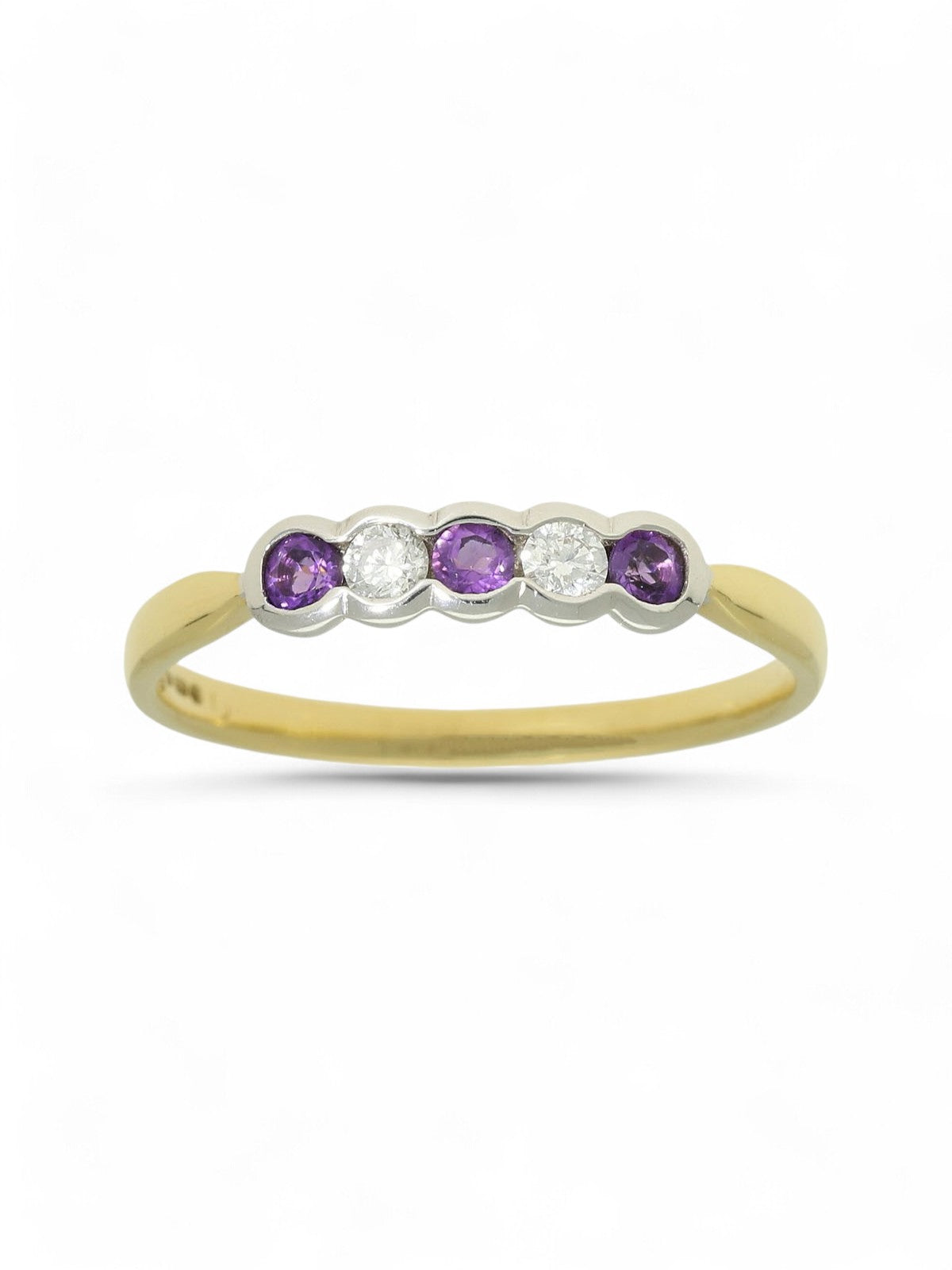 Amethyst & Diamond Five Stone ring in 18ct Yellow & White Gold