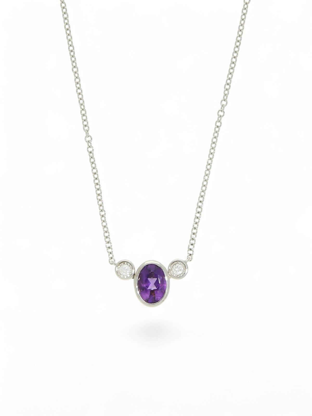 Amethyst & Diamond Oval Pendant Necklace in 9ct White Gold