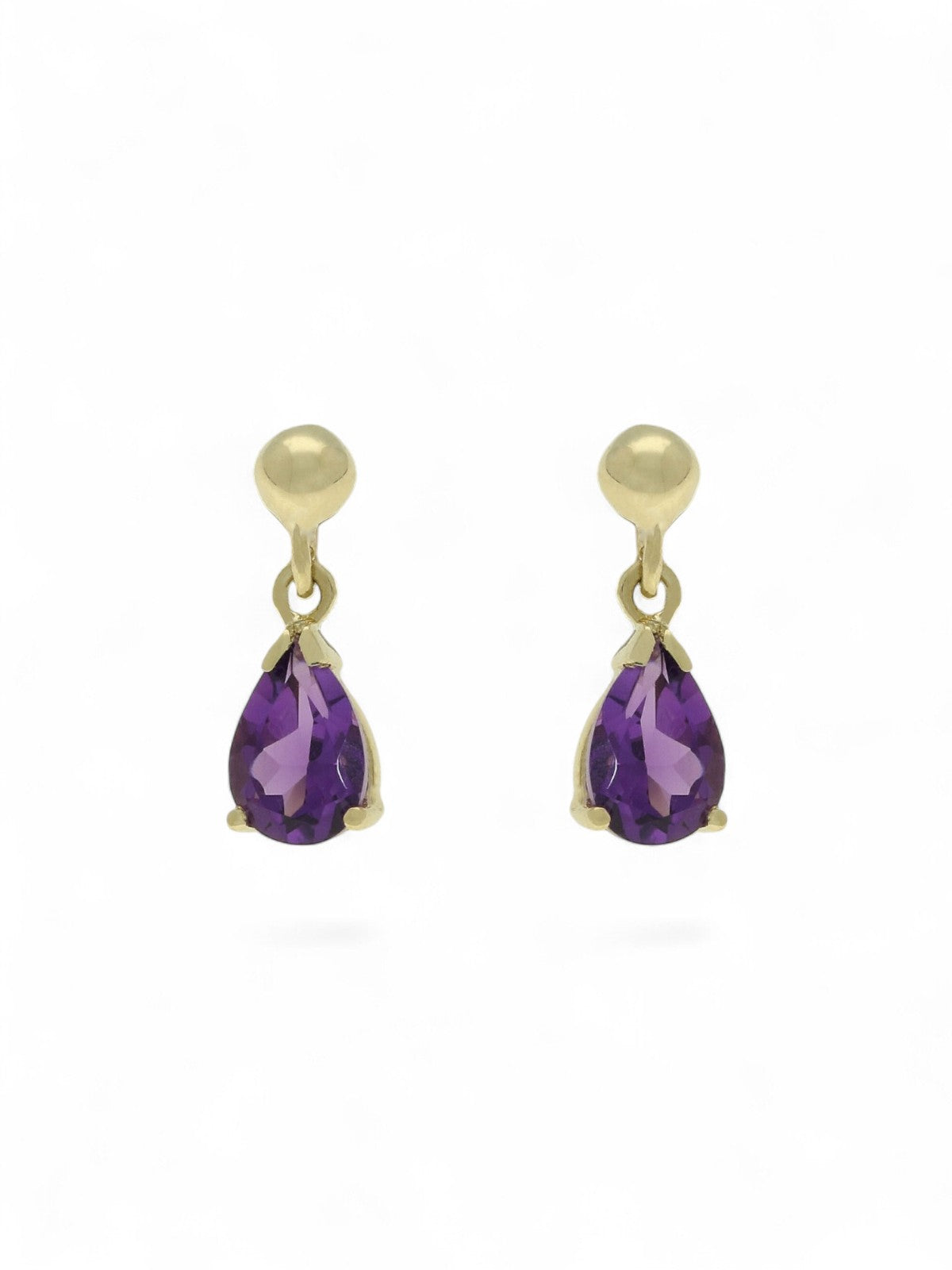 Amethyst Pear Drop Earrings in 9ct Yellow Gold
