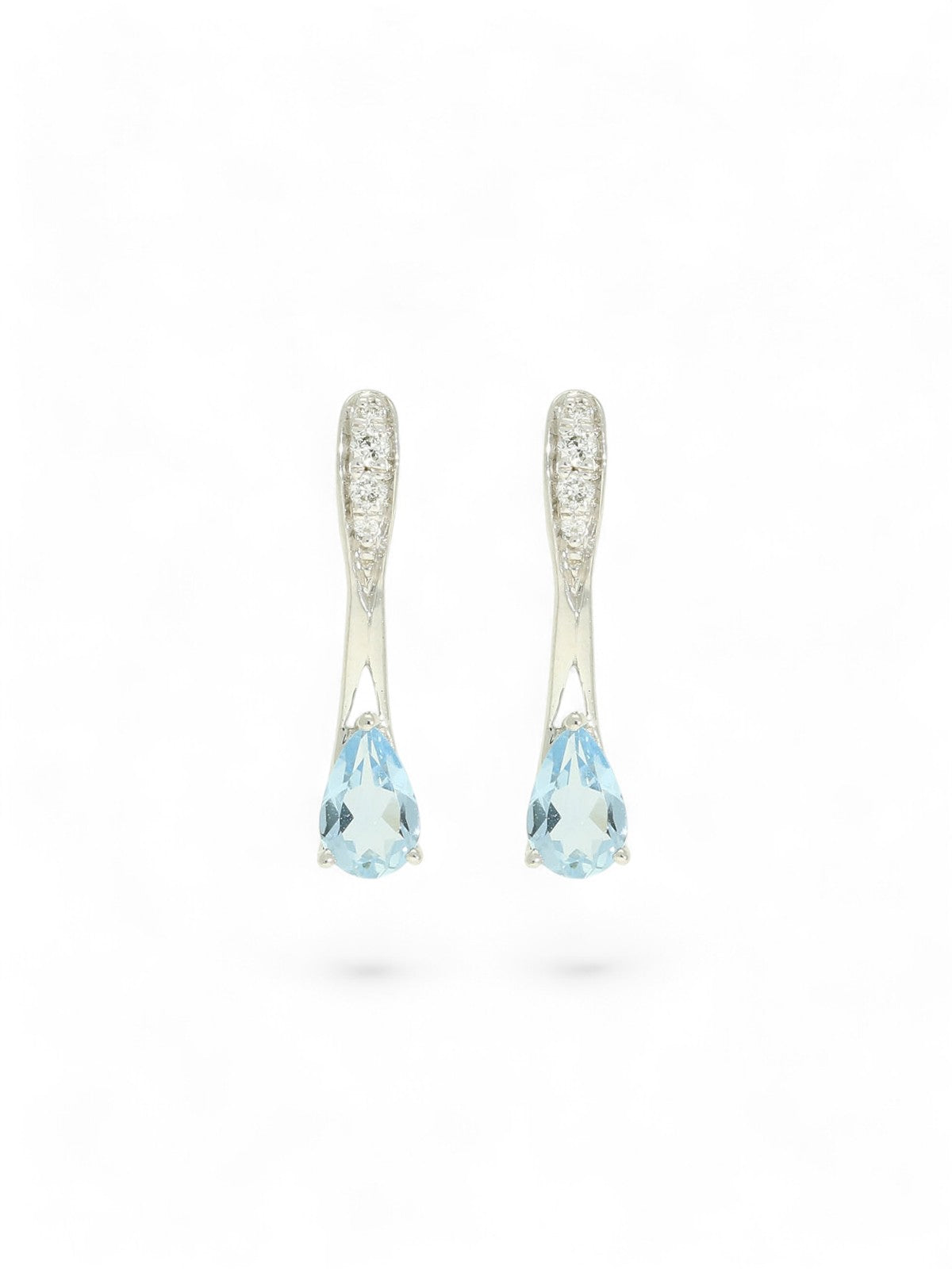 Aquamarine & Diamond Pear Drop Earrings in 9ct White Gold