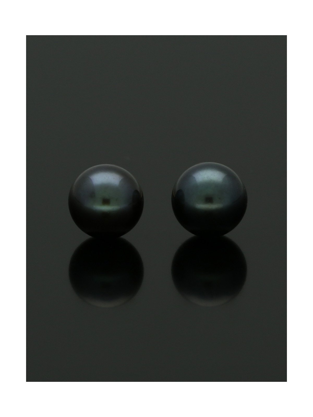 Black Cultured Pearl Stud Earrings 5.5mm in 9ct Yellow Gold