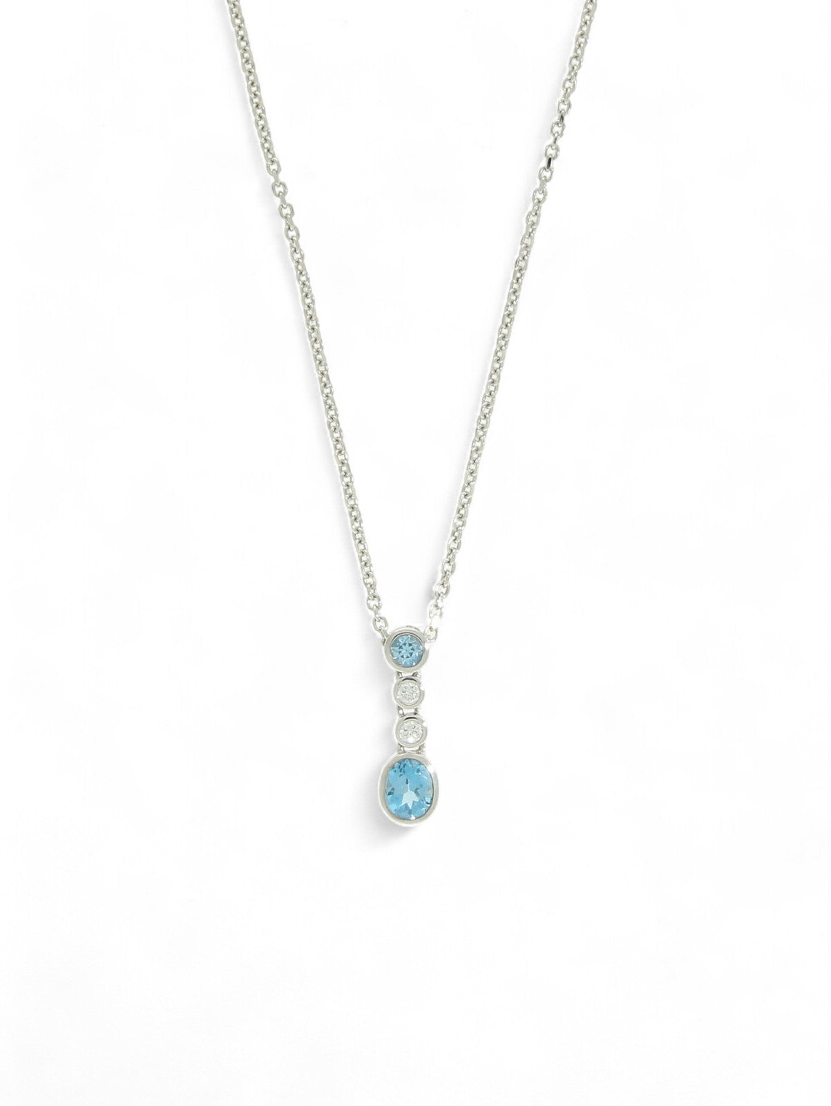 Blue Topaz & Diamond Pendant Necklace in 18ct White Gold