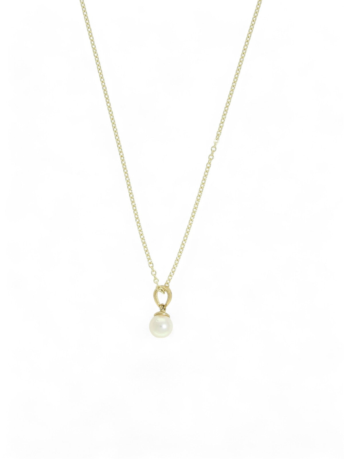 White Cultured Pearl Pendant Necklace 5mm in 9ct Yellow Gold