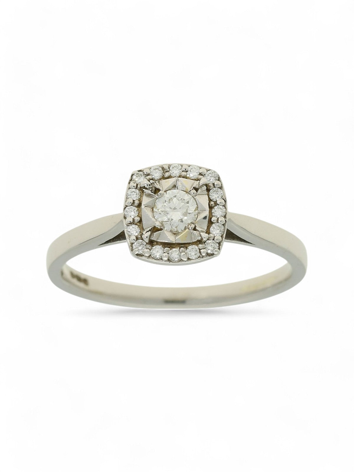 Diamond Cushion Shaped Cluster Ring in 9ct White Gold