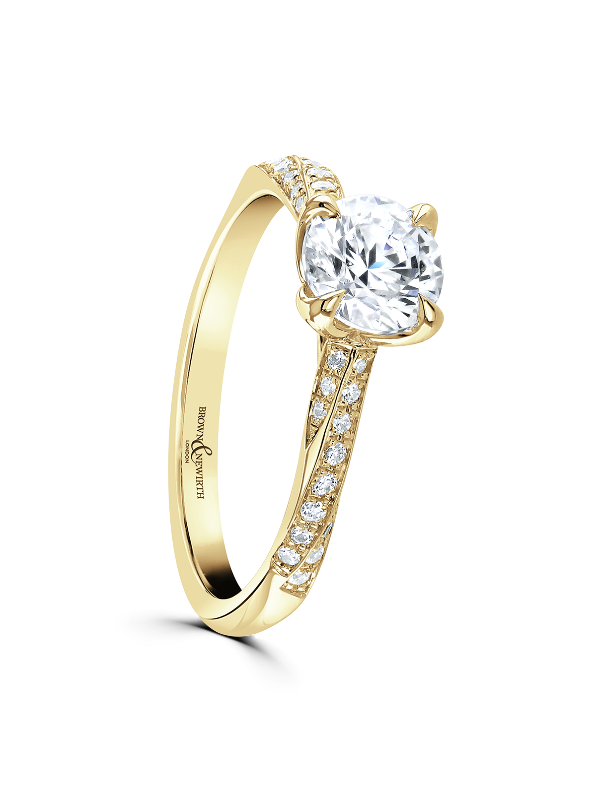 Brown & Newirth Azalea 0.50ct Brilliant Cut Certificated Diamond Solitaire Engagement Ring in 18ct Yellow Gold with Diamond Set Shoulders