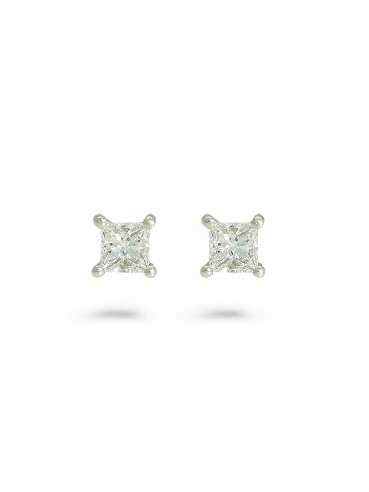 Diamond Solitaire Stud Earrings "The Grace Collection" 0.40ct Princess Cut in 18ct White Gold
