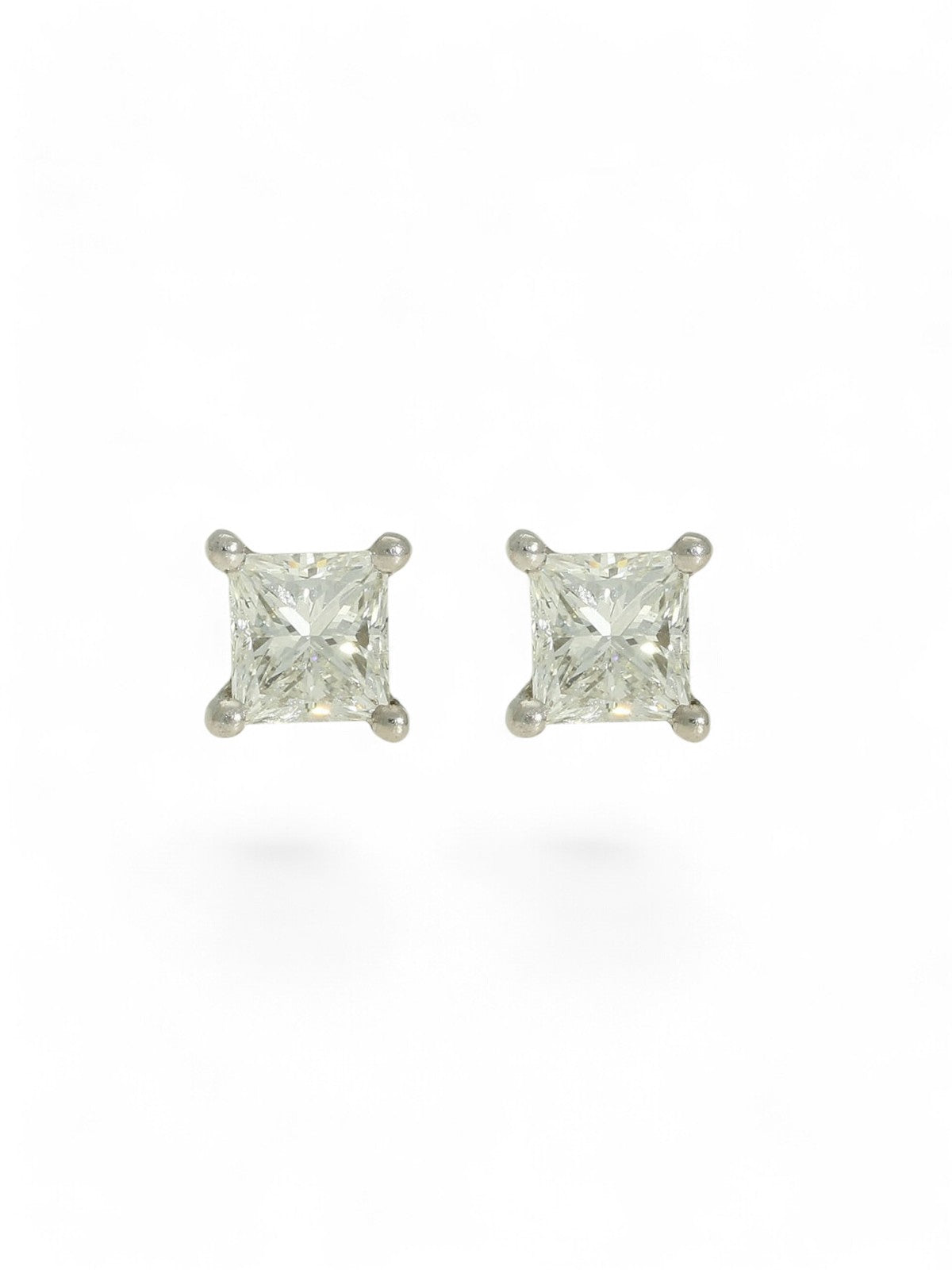 Diamond Solitaire Stud Earrings "The Grace Collection" 1.00ct Princess Cut in 18ct White Gold