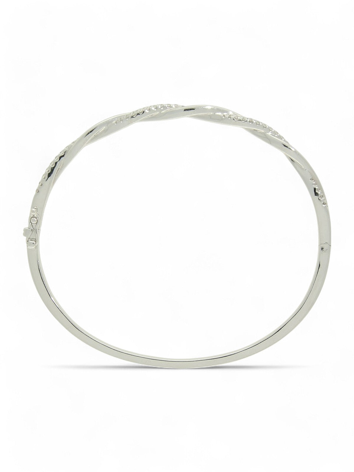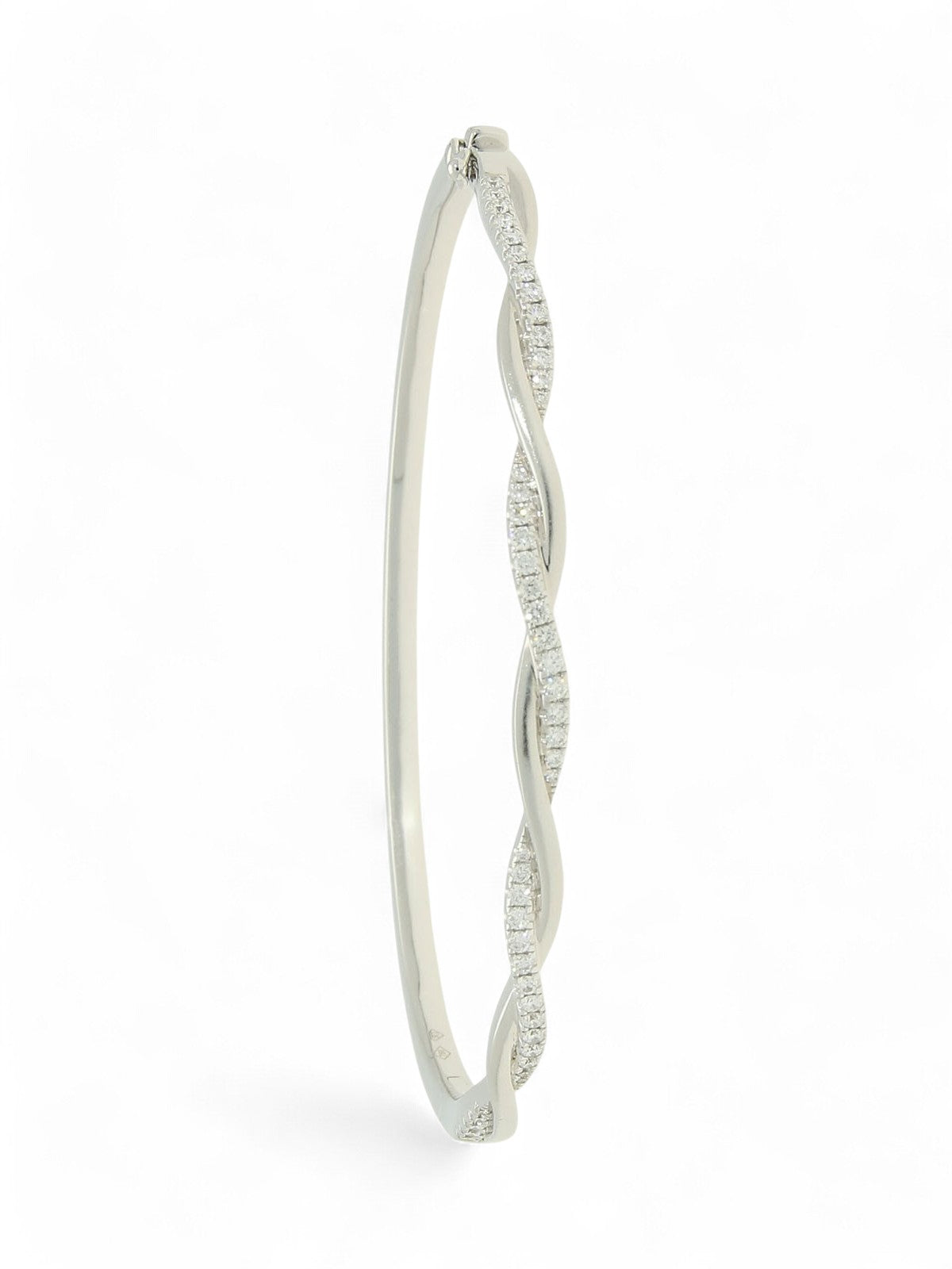 Beautifully crafted from 18ct white gold, this twist bangle showcases round brilliant cut diamonds (total 0.41ct) in a claw setting. Available to buy online or at our Eastbourne, East Sussex jewellers, this Diamond Twist Bangle in 18ct White Gold is a timeless way to celebrate one of life's special moments - whether it be a birthday, engagement or anniversary.