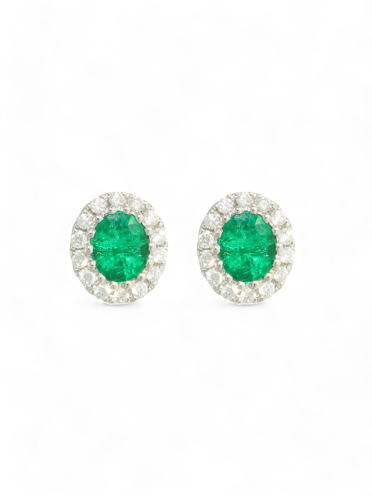 Emerald & Diamond Cluster Earrings in 18ct White Gold