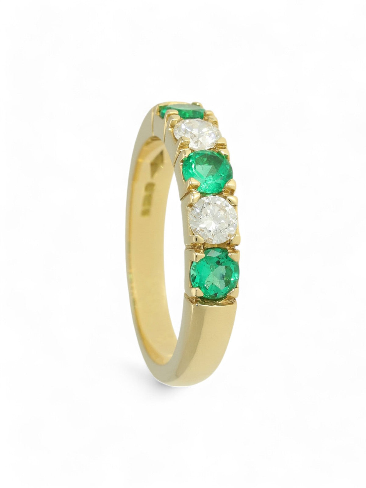 Emerald & Diamond Five Stone Ring Round Brilliant Cut in 18ct Yellow Gold