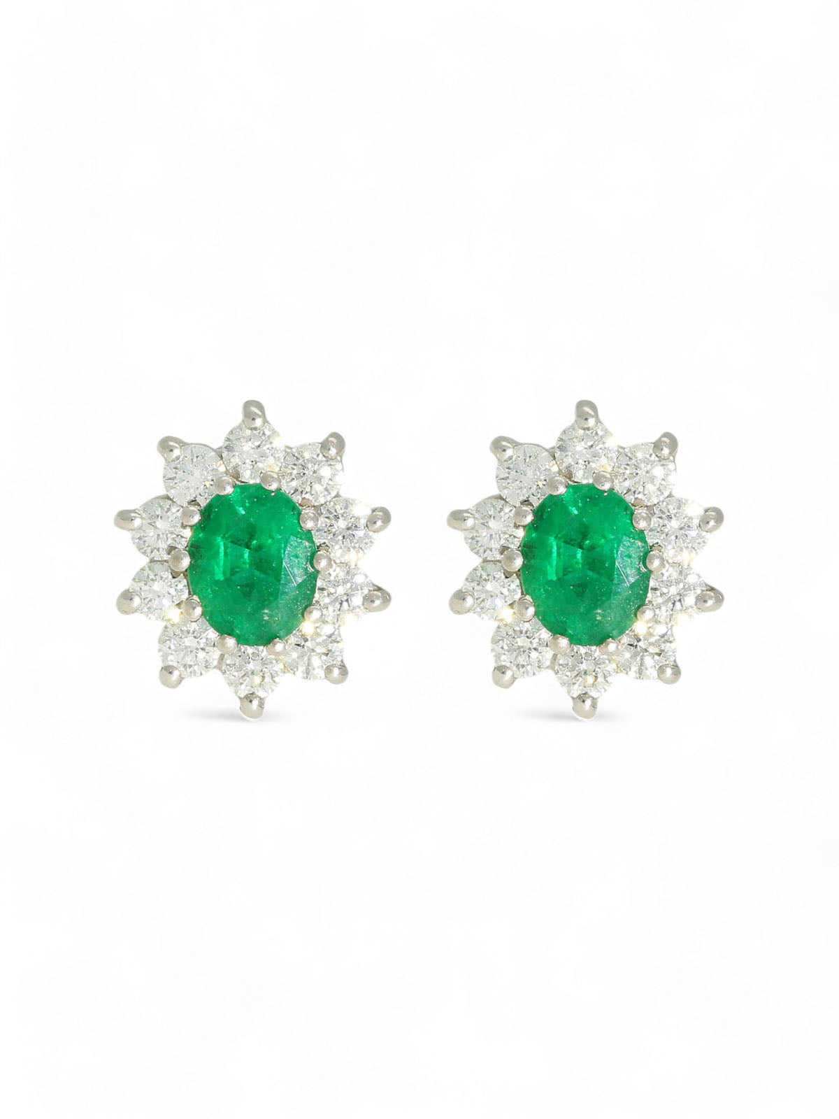 Emerald & Diamond Oval Cluster Stud Earrings in 18ct Yellow & White Gold