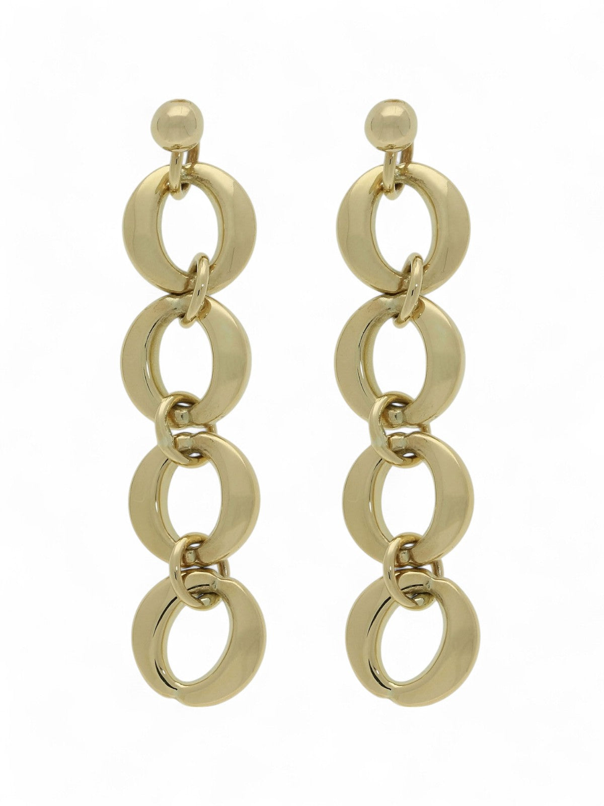 Lovingly crafted from 9ct yellow gold, this pair of drop earrings showcase an open disc link design. Available to buy online or at our Eastbourne, East Sussex jewellers, this pair of Open Disc Drop Earrings in 9ct Yellow Gold are the perfect gift to celebrate one of life's special moments.