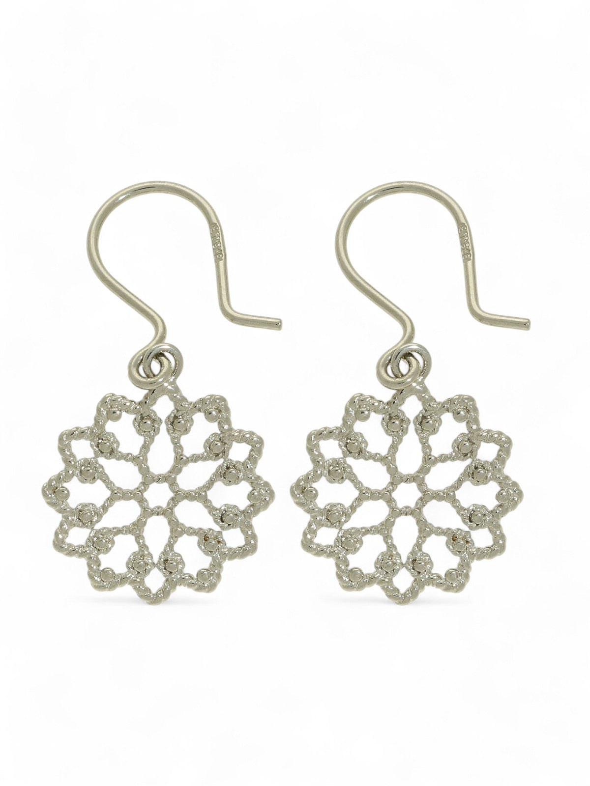 Open Filigree Flower Drop Earrings in 9ct White Gold
