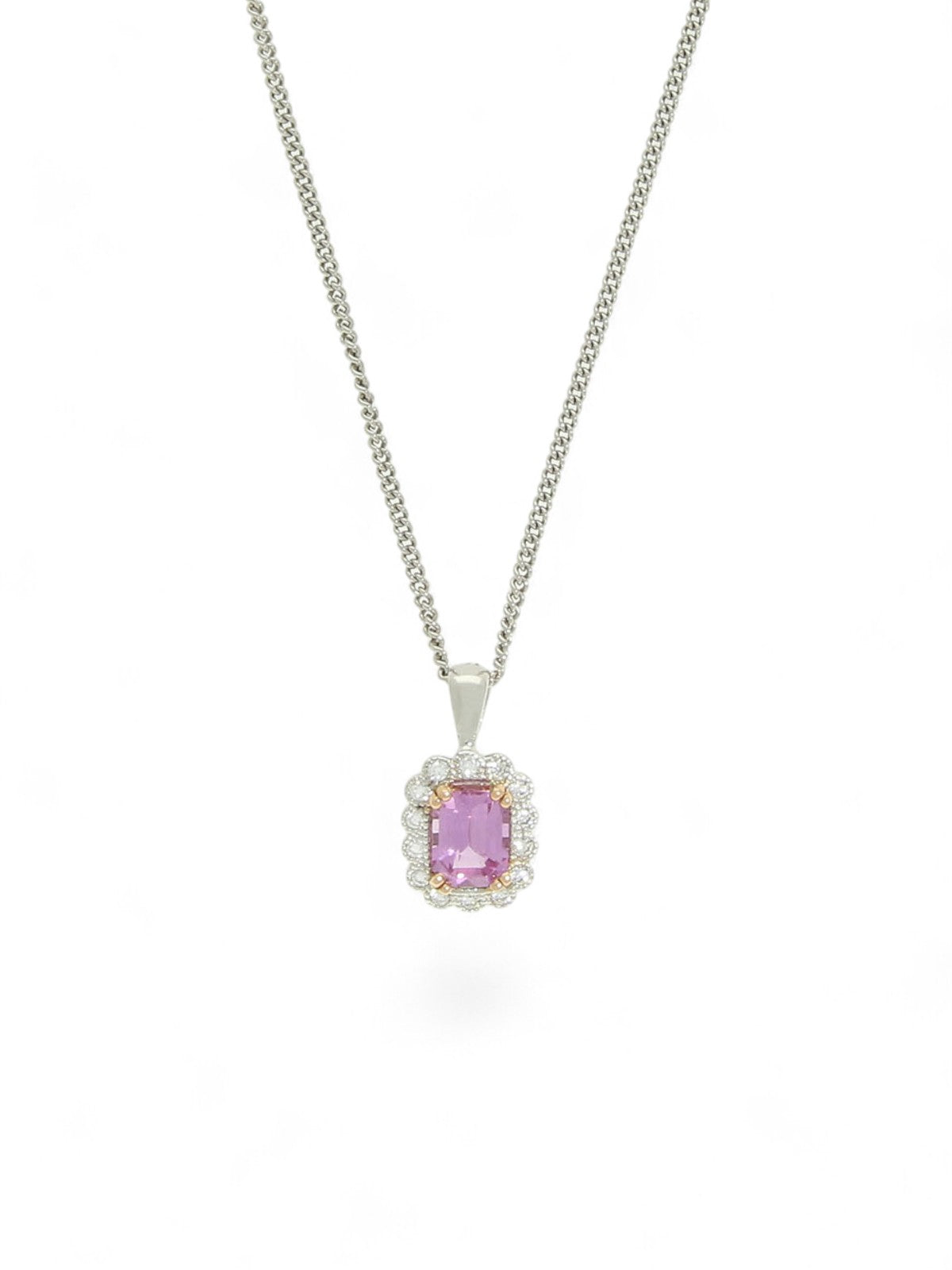 Pink Sapphire & Diamond Octagon Pendant Necklace in 18ct White & Rose Gold
