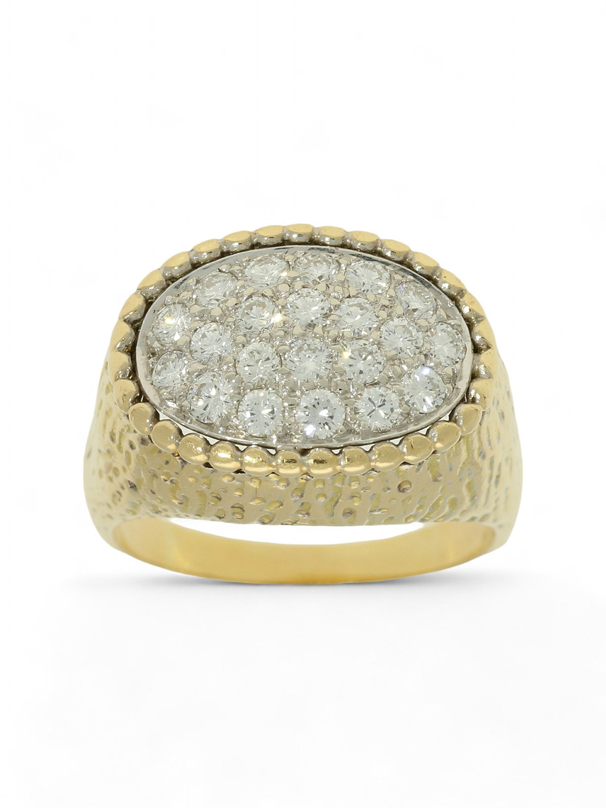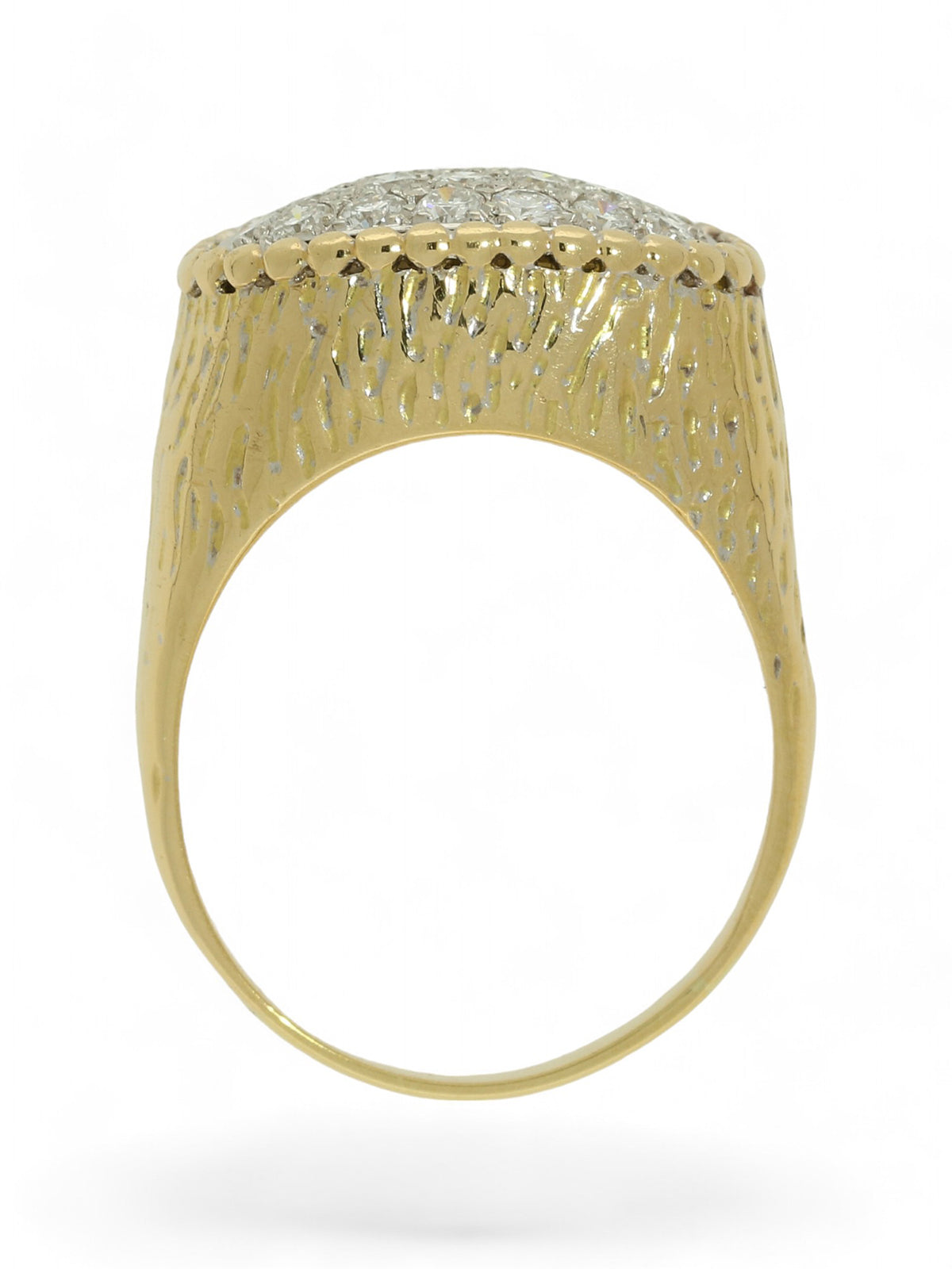 Available to buy online or at our jewellers in Eastbourne, East Sussex, this pre owned diamond cluster ring showcases 21 round brilliant cut diamonds with an approx total weight of 0.84ct. Crafted from non-hallmarked gold metal, this beautiful diamond cluster dress ring features a bark effect and measures a UK finger size P.