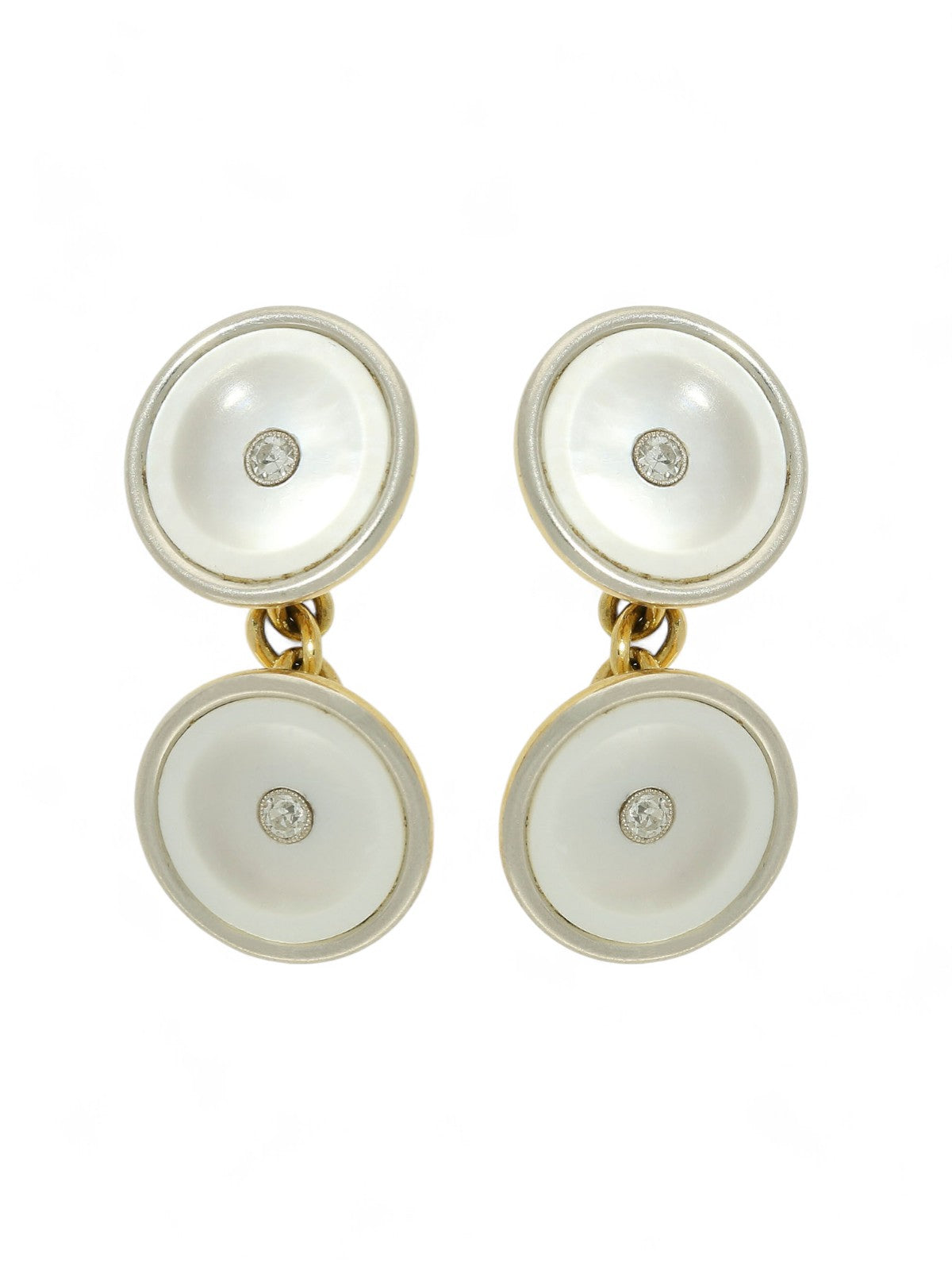 Pre Owned Mother of Pearl & Diamond Cufflinks in 18ct Yellow Gold and Platinum