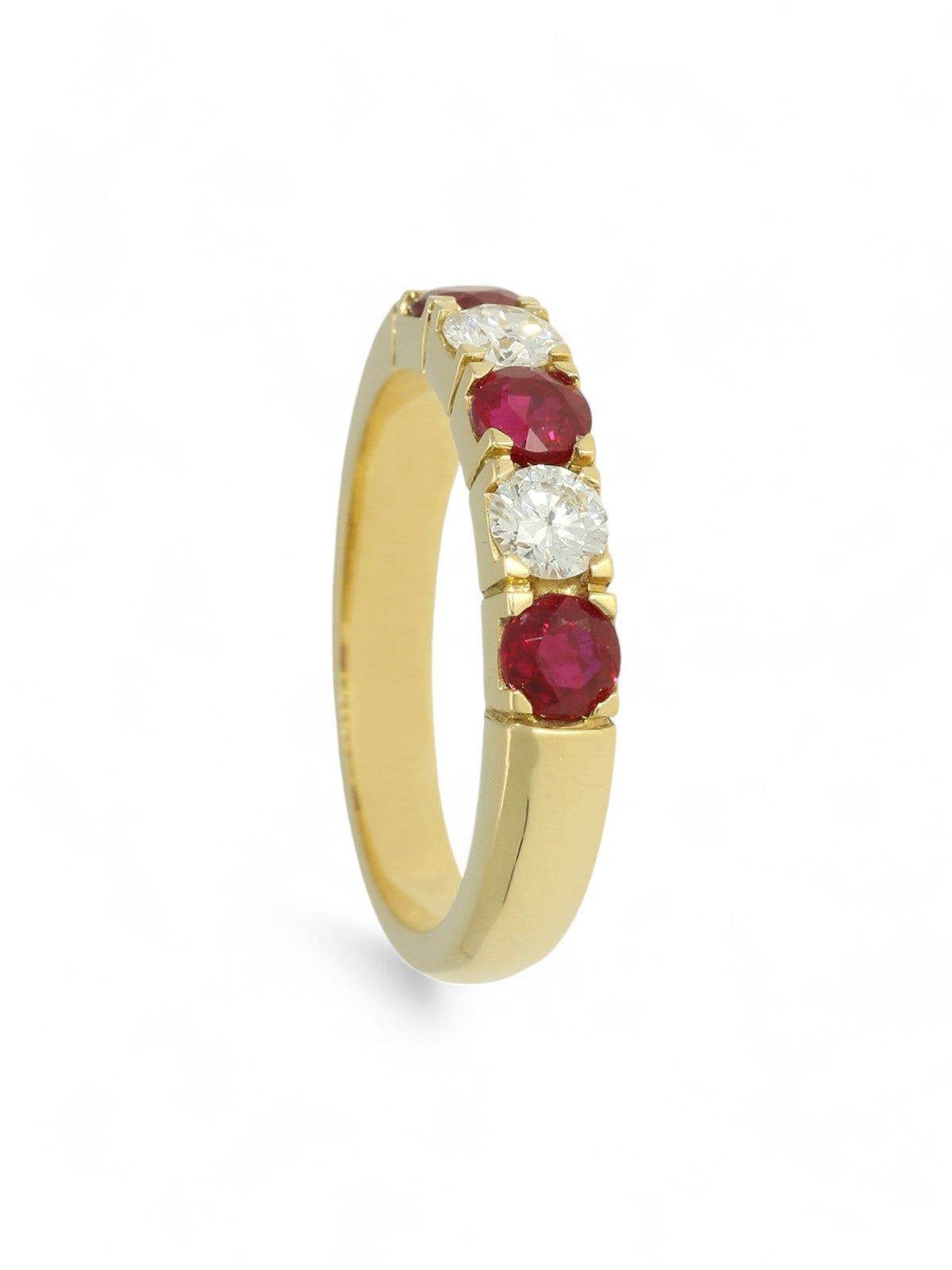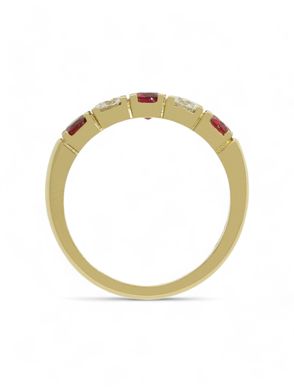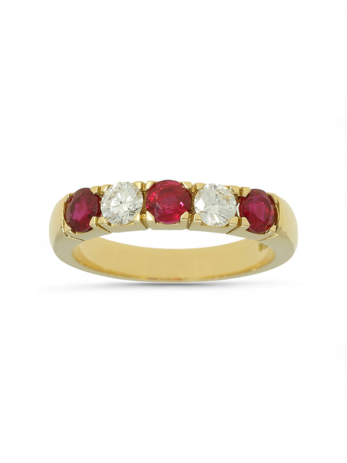 Ruby & Diamond Five Stone Ring Round Cut Brilliant in 18ct Yellow Gold