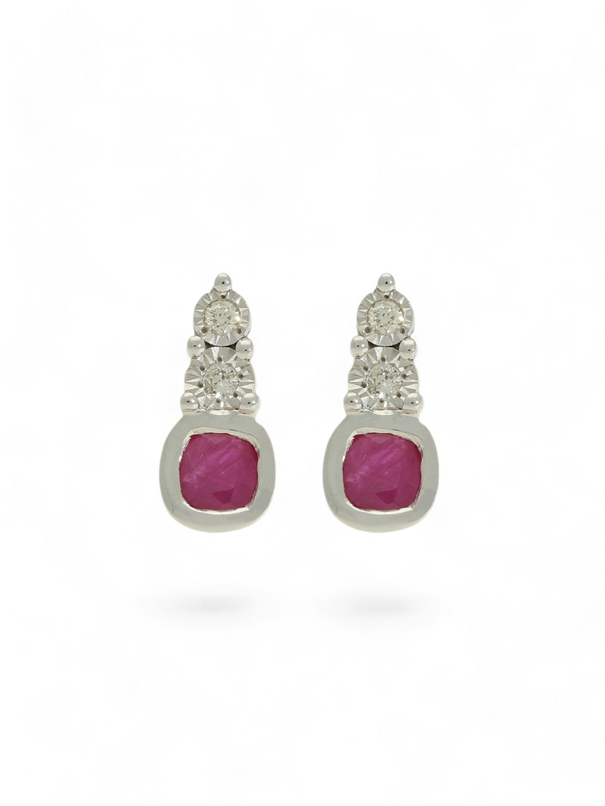 Ruby & Diamond Graduating Drop Earrings in 9ct White Gold