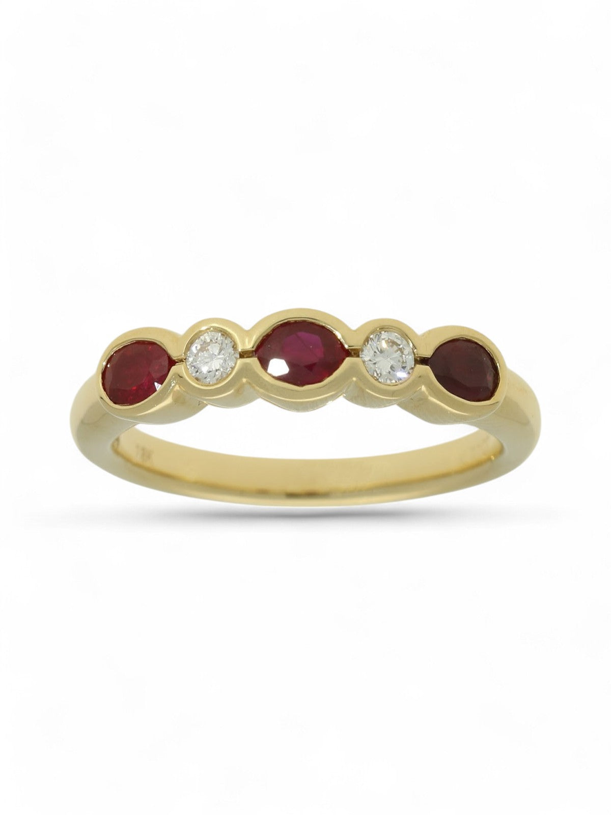 Ruby & Diamond Half Eternity Ring in 18ct Yellow Gold