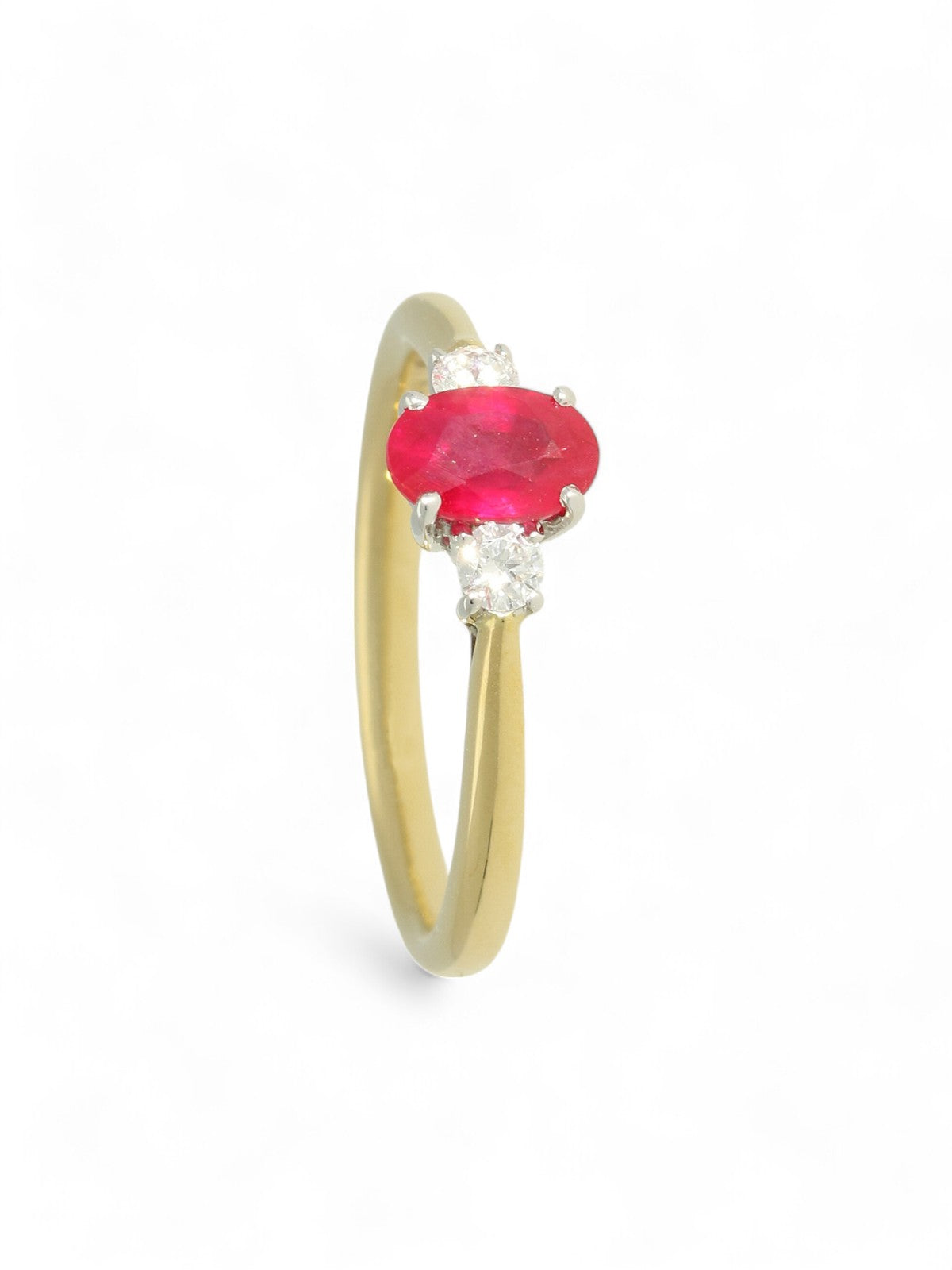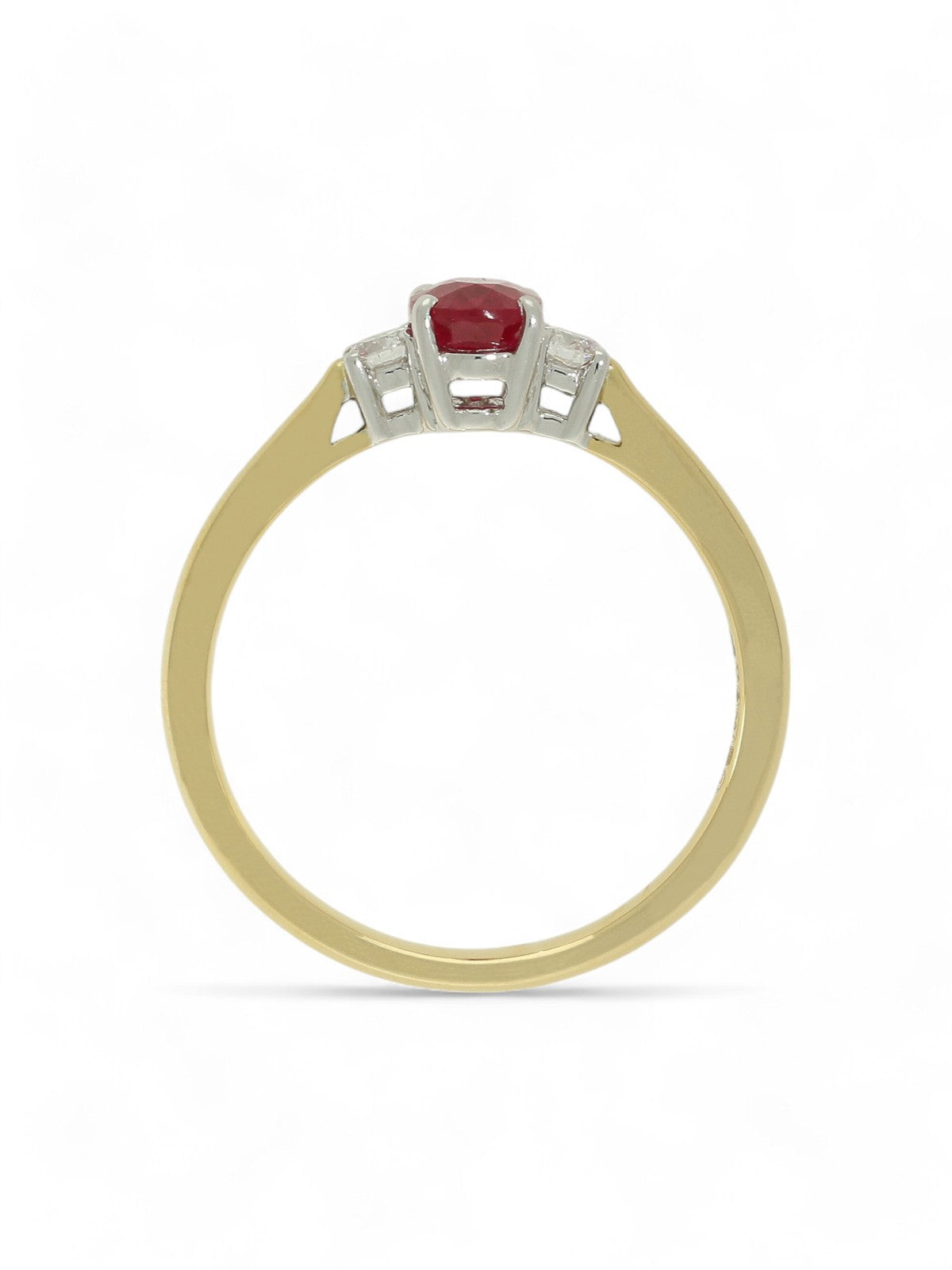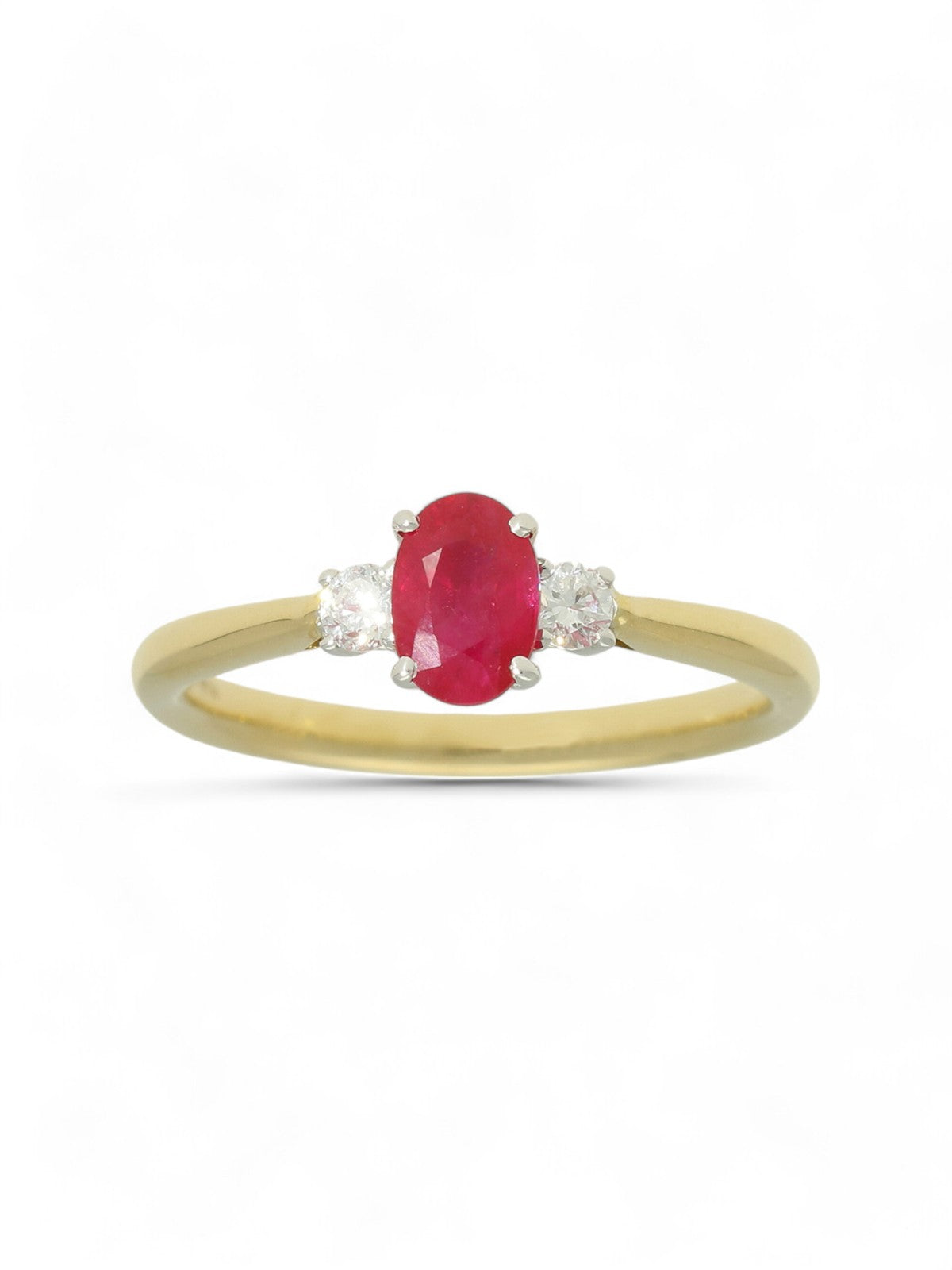 Ruby & Diamond Oval Three Stone Ring in 18ct Yellow & White Gold