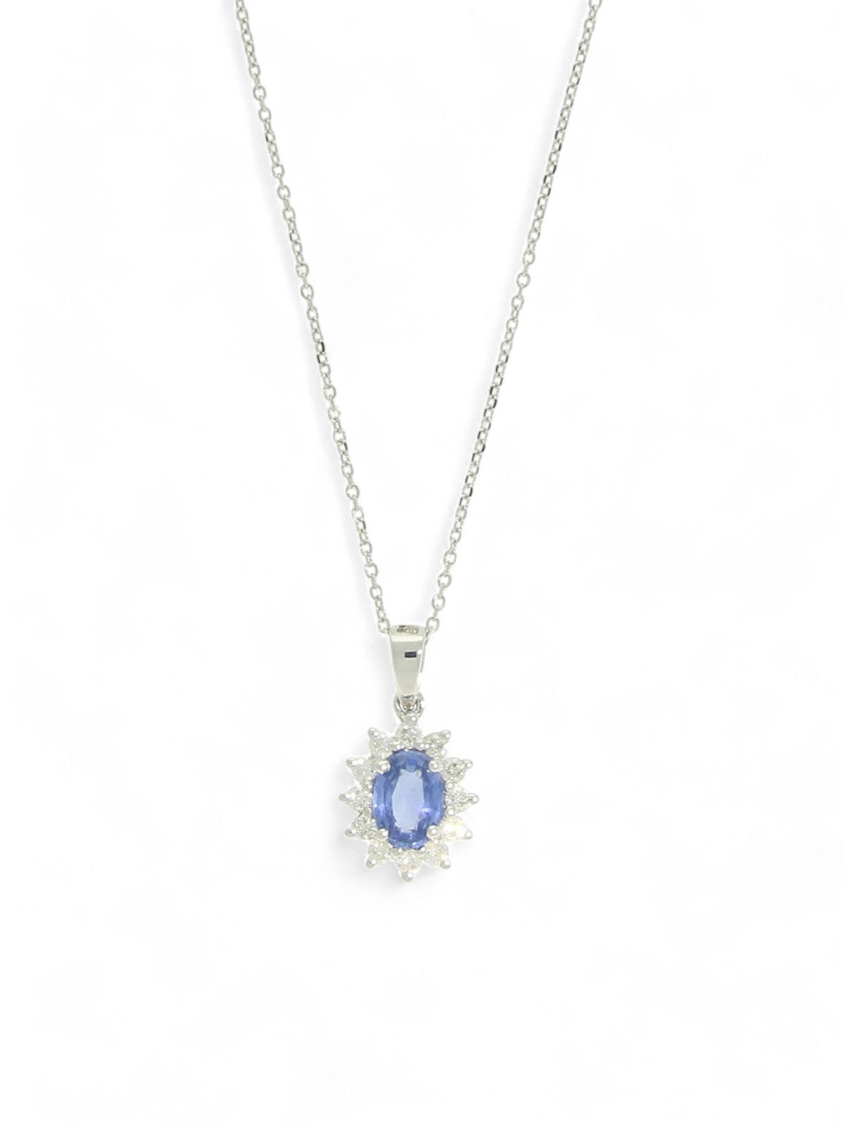 Sapphire & Diamond Oval Cluster Pendant Necklace in 18ct White Gold