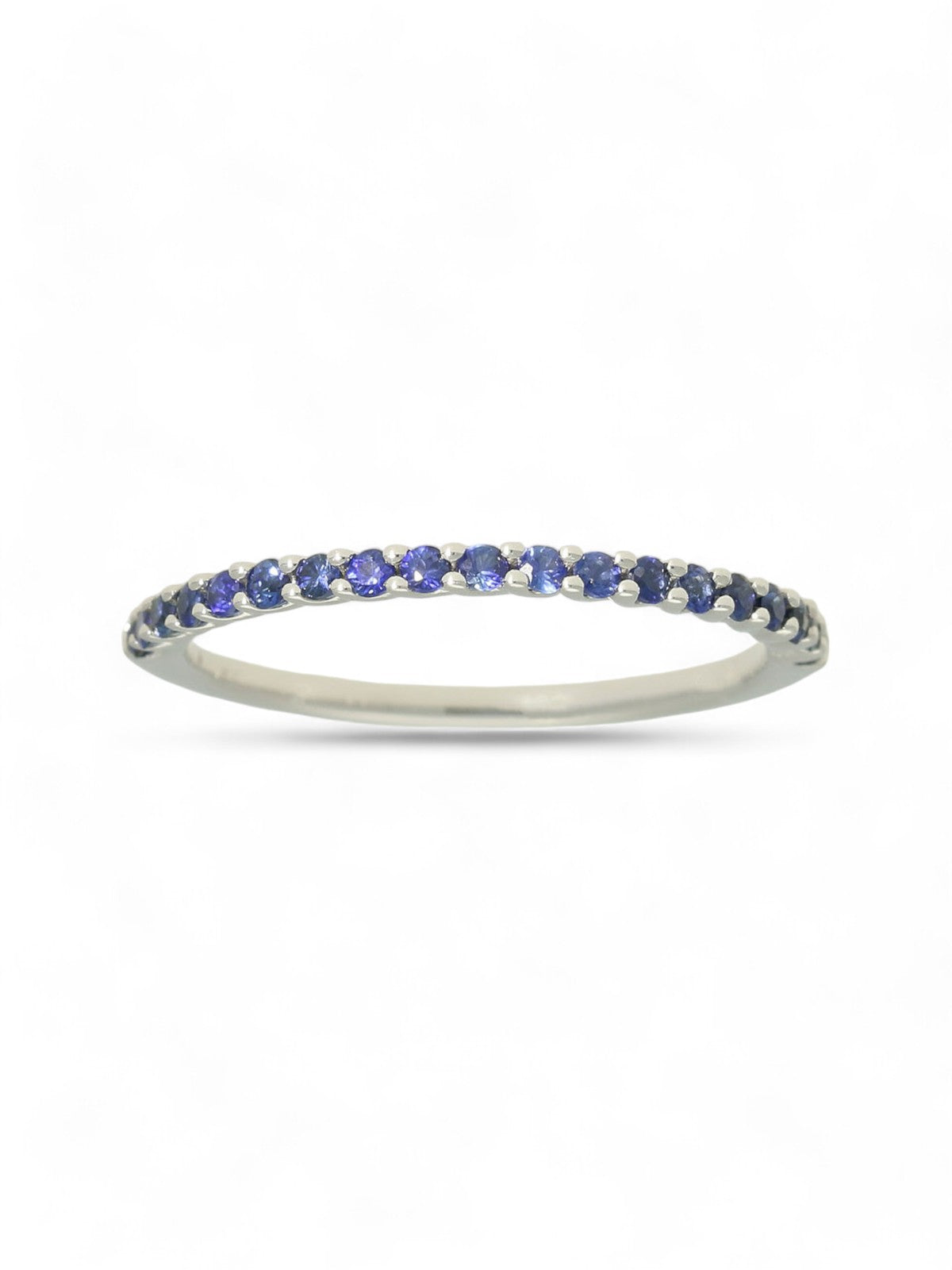 Beautifully crafted from 9ct white gold, this stunning half eternity ring showcases a row of claw set round brilliant cut sapphire gemstones (total 0.30ct). Available to buy online or at our Eastbourne, East Sussex jewellers, this Sapphire Half Eternity Ring in 9ct White Gold is a timeless way to celebrate one of life's special moments - whether it be a birthday, engagement or anniversary.