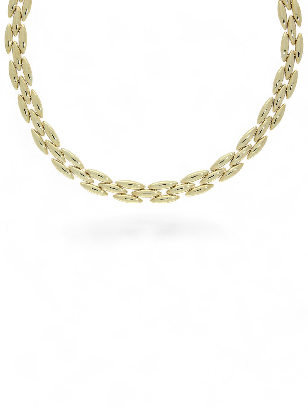 Three Row Marquise Shaped Link Necklace in 9ct Yellow Gold