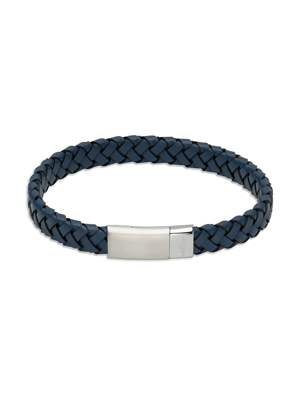 Unique & Co. 21cm Navy Blue Leather Bracelet with Steel Clasp