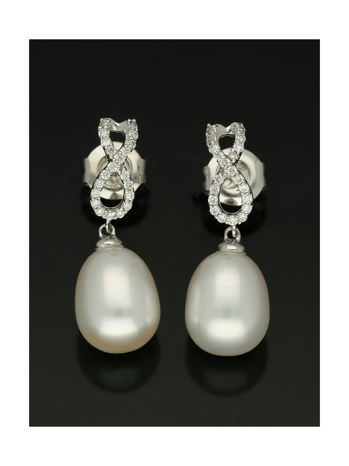White Cultured Pearl & Diamond Drop Earrings in 9ct White Gold
